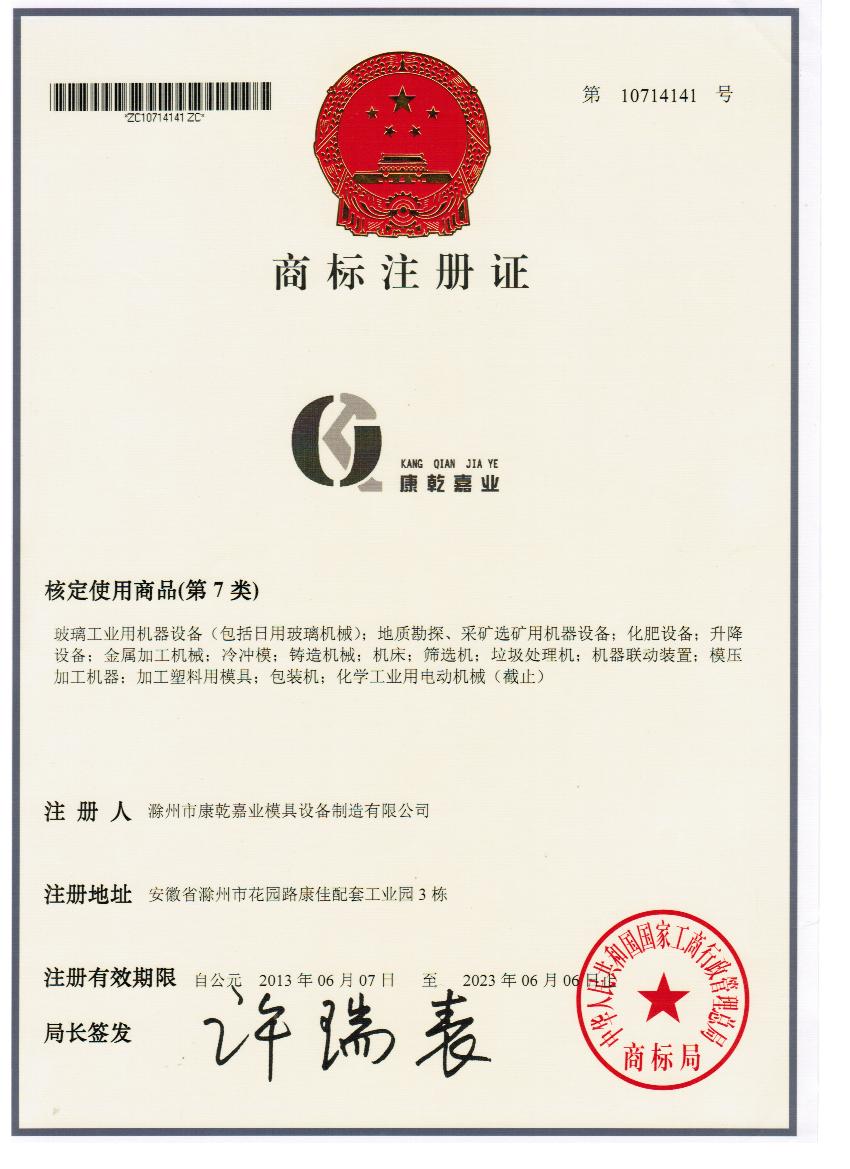 | 滁州市康乾嘉业商标注册成功! |